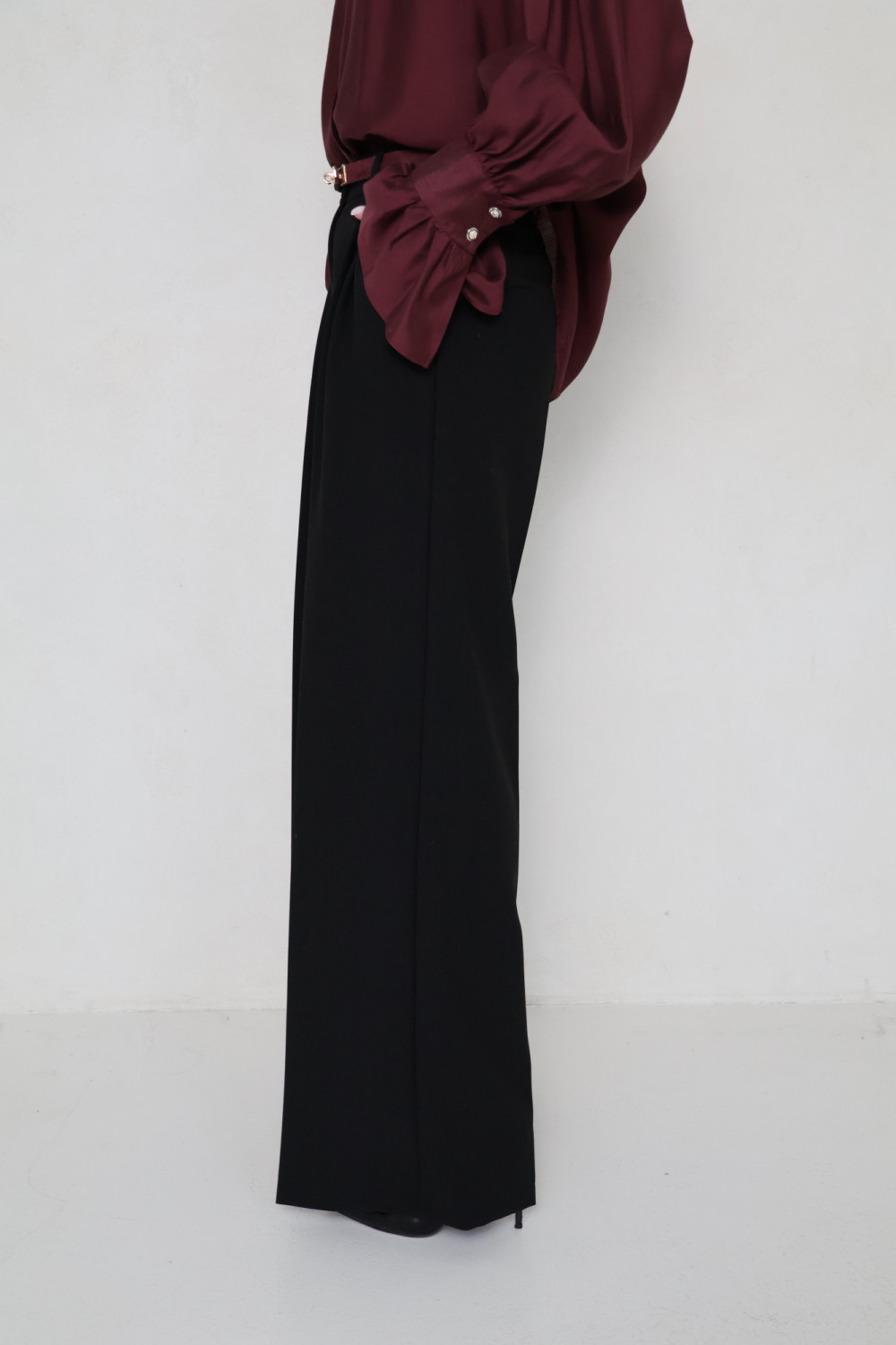 Spodnie STREETSTYLE w czarnym kolorze wykonane są z wysokiej jakości materiału, który zapewnia komfort noszenia przez cały dzień. Wysoki stan podkreśla talię, a rozszerzane nogawki nadają sylwetce lekkości i optycznie wydłużają nogi.