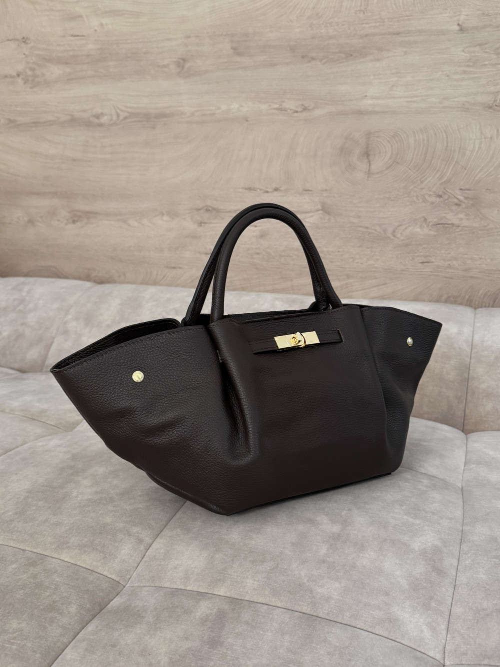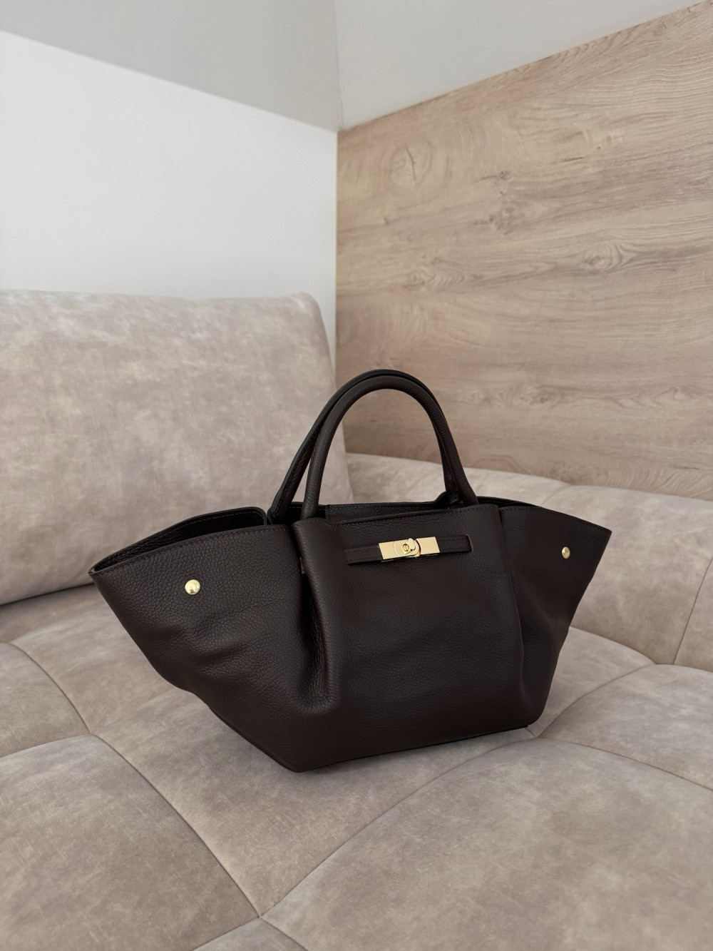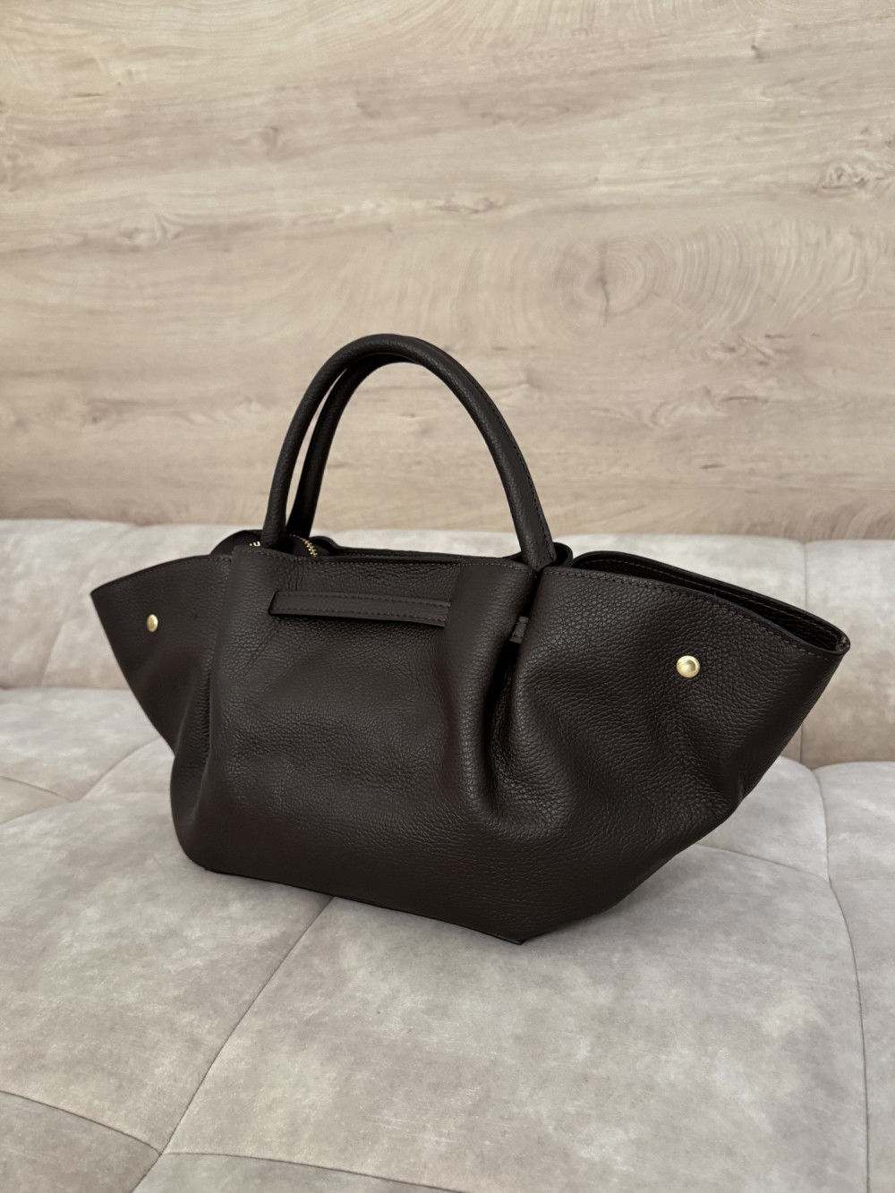 Torebka DELIANE w kolorze czekolady wykonana jest w 100% z naturalnej skóry zamszowej, co nadaje jej miękkość, trwałość i przyjemną fakturę. Głęboki odcień czekolady wprowadza wyrafinowany, uniwersalny akcent, który łatwo zestawić z różnymi elementami garderoby.