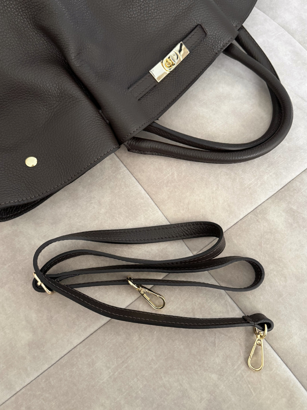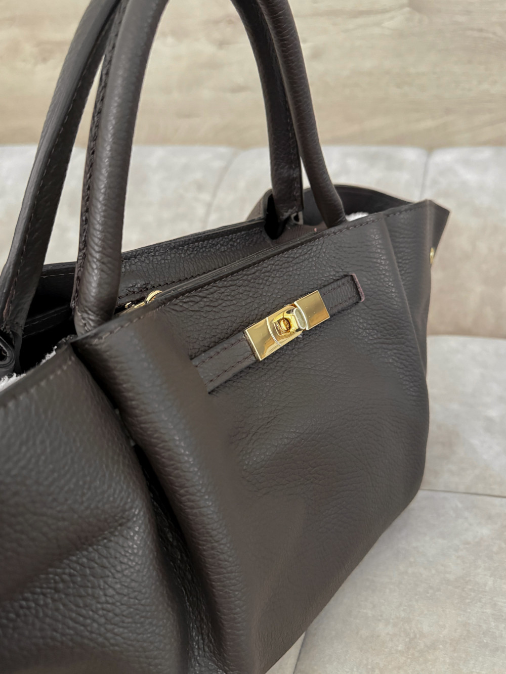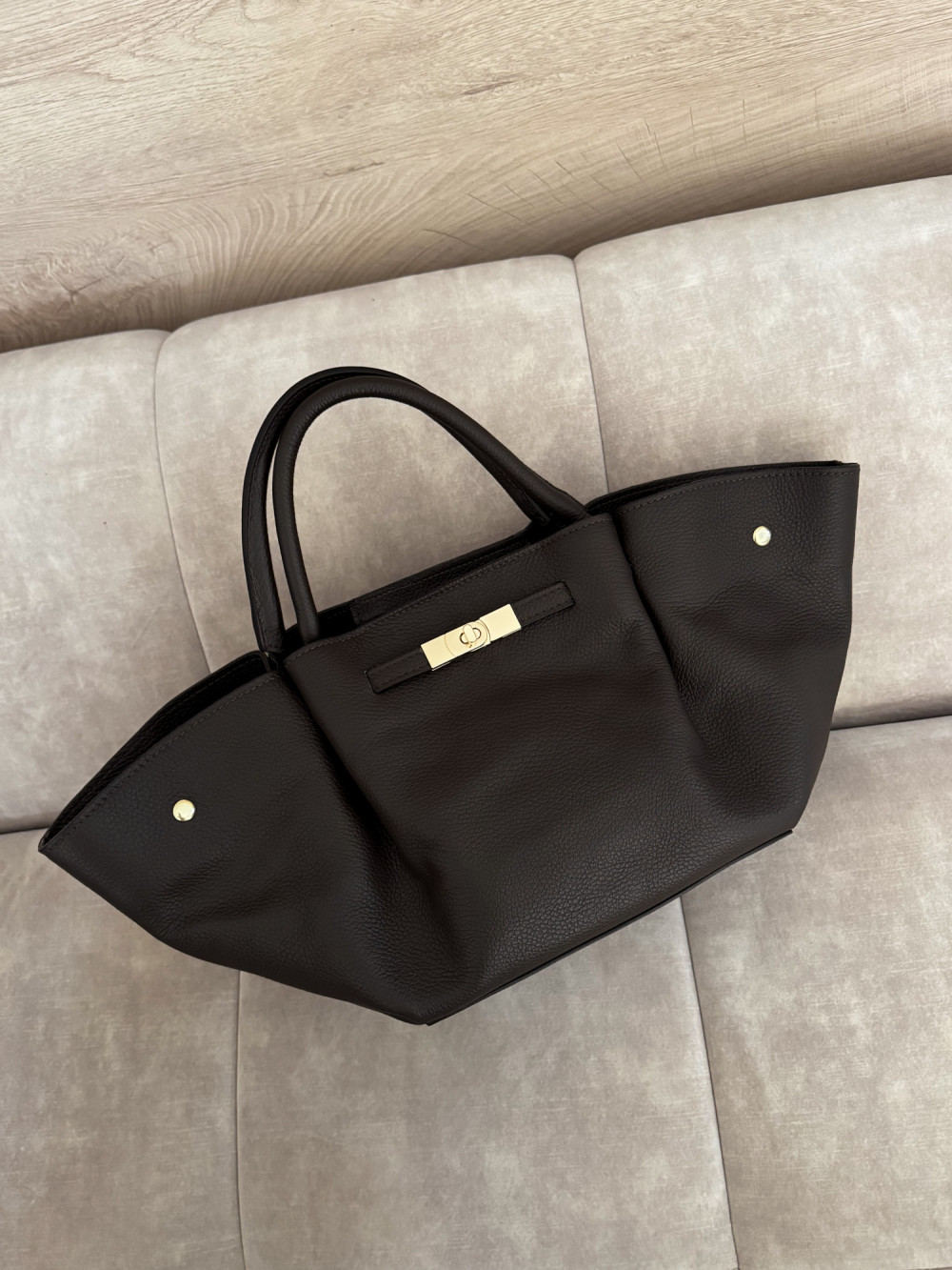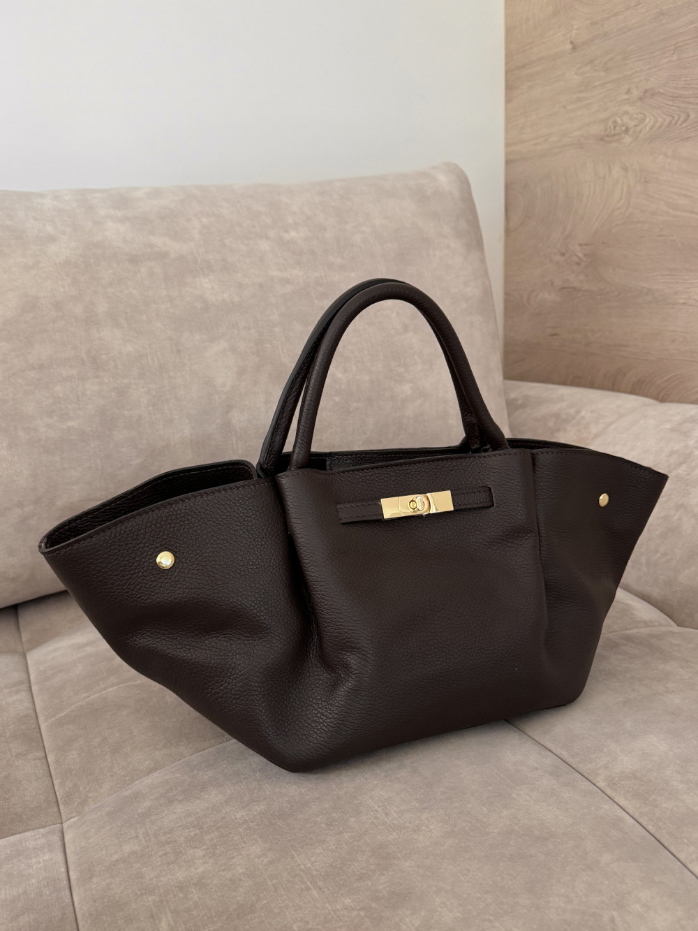 Torebka DELIANE w kolorze czekolady wykonana jest w 100% z naturalnej skóry zamszowej, co nadaje jej miękkość, trwałość i przyjemną fakturę. Głęboki odcień czekolady wprowadza wyrafinowany, uniwersalny akcent, który łatwo zestawić z różnymi elementami garderoby.