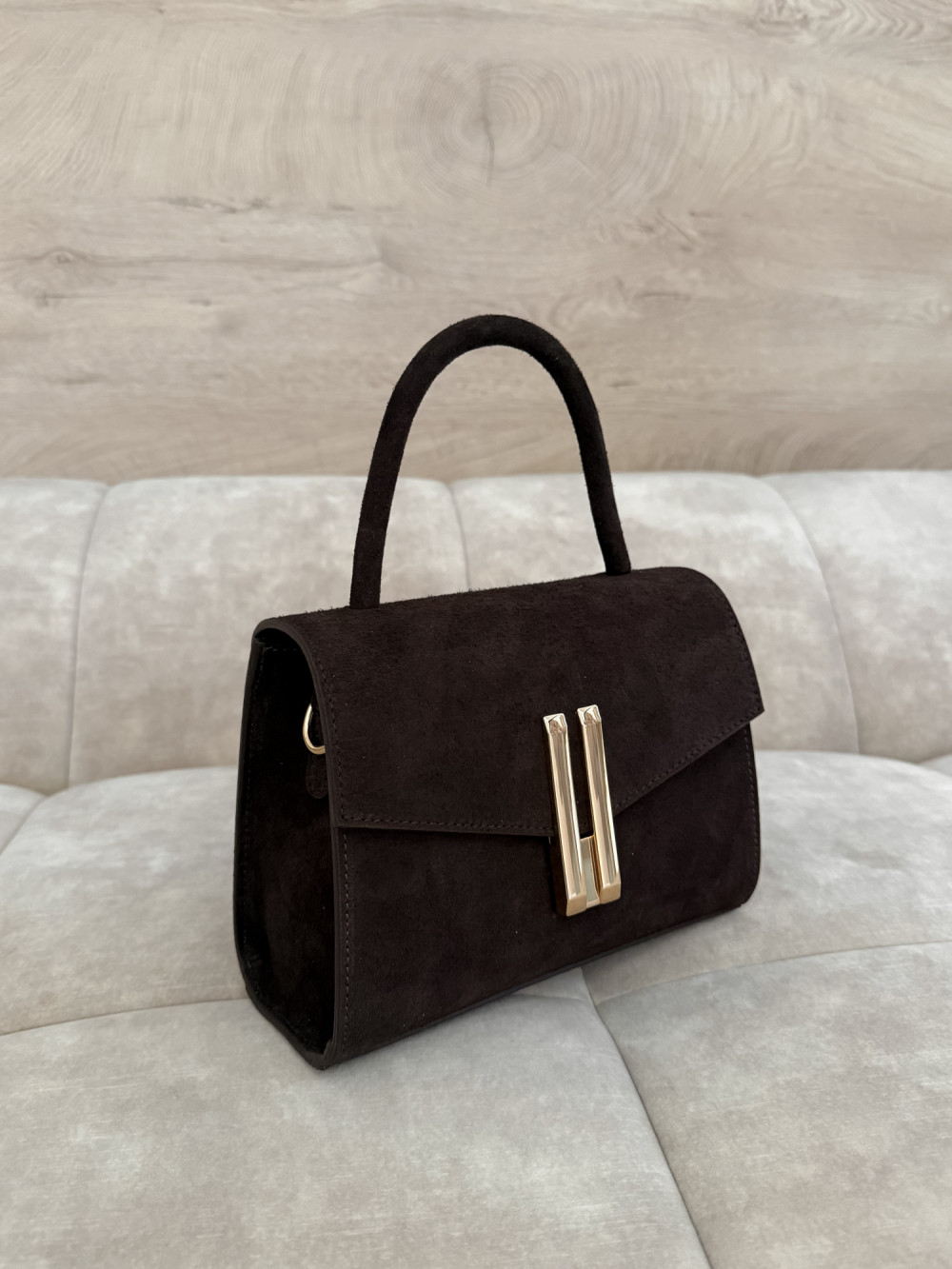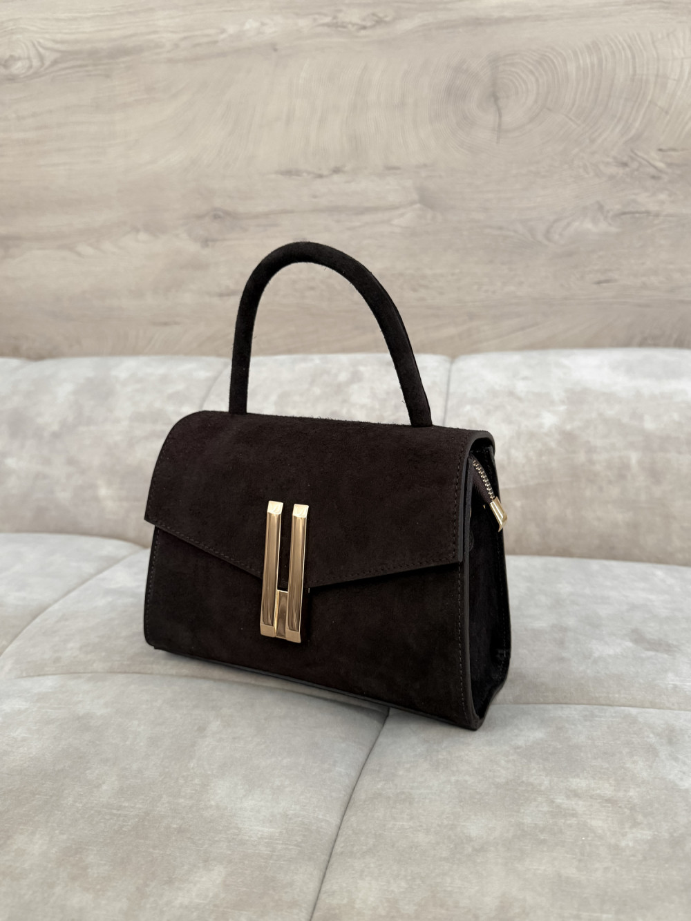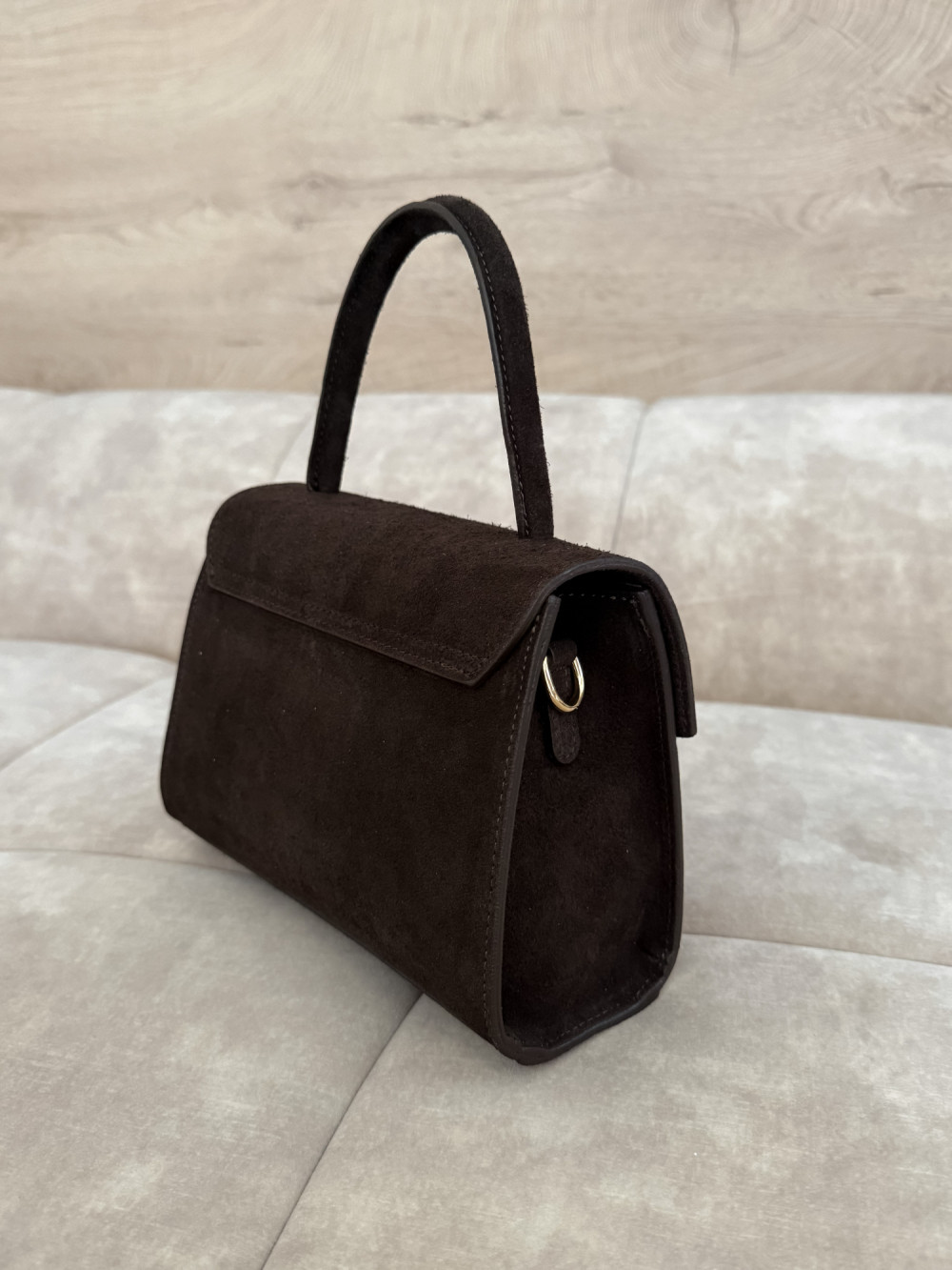 Torebka z rączką 100% skóra zamszowa czekolada ELODIE