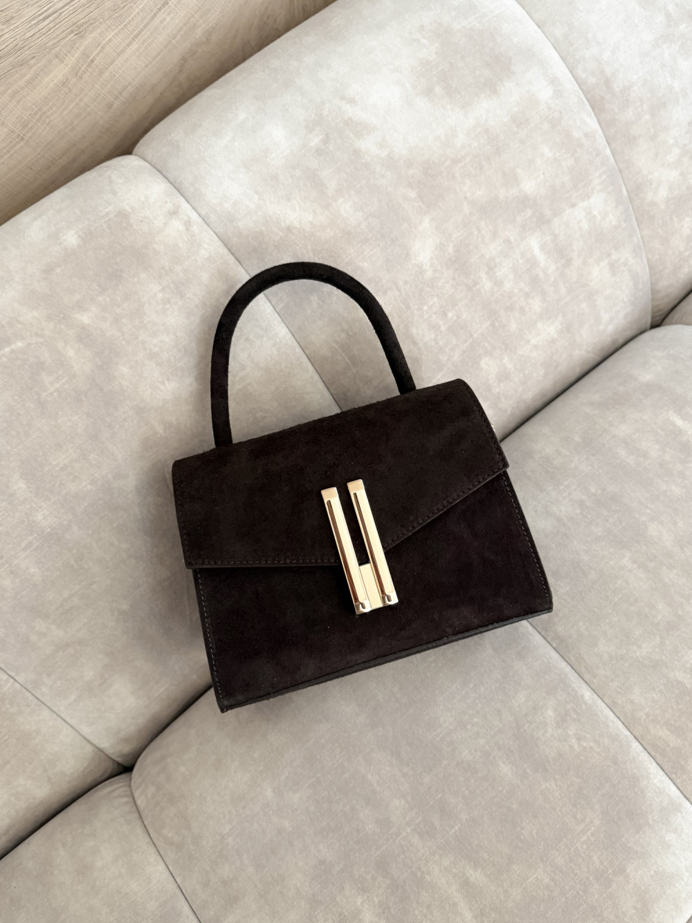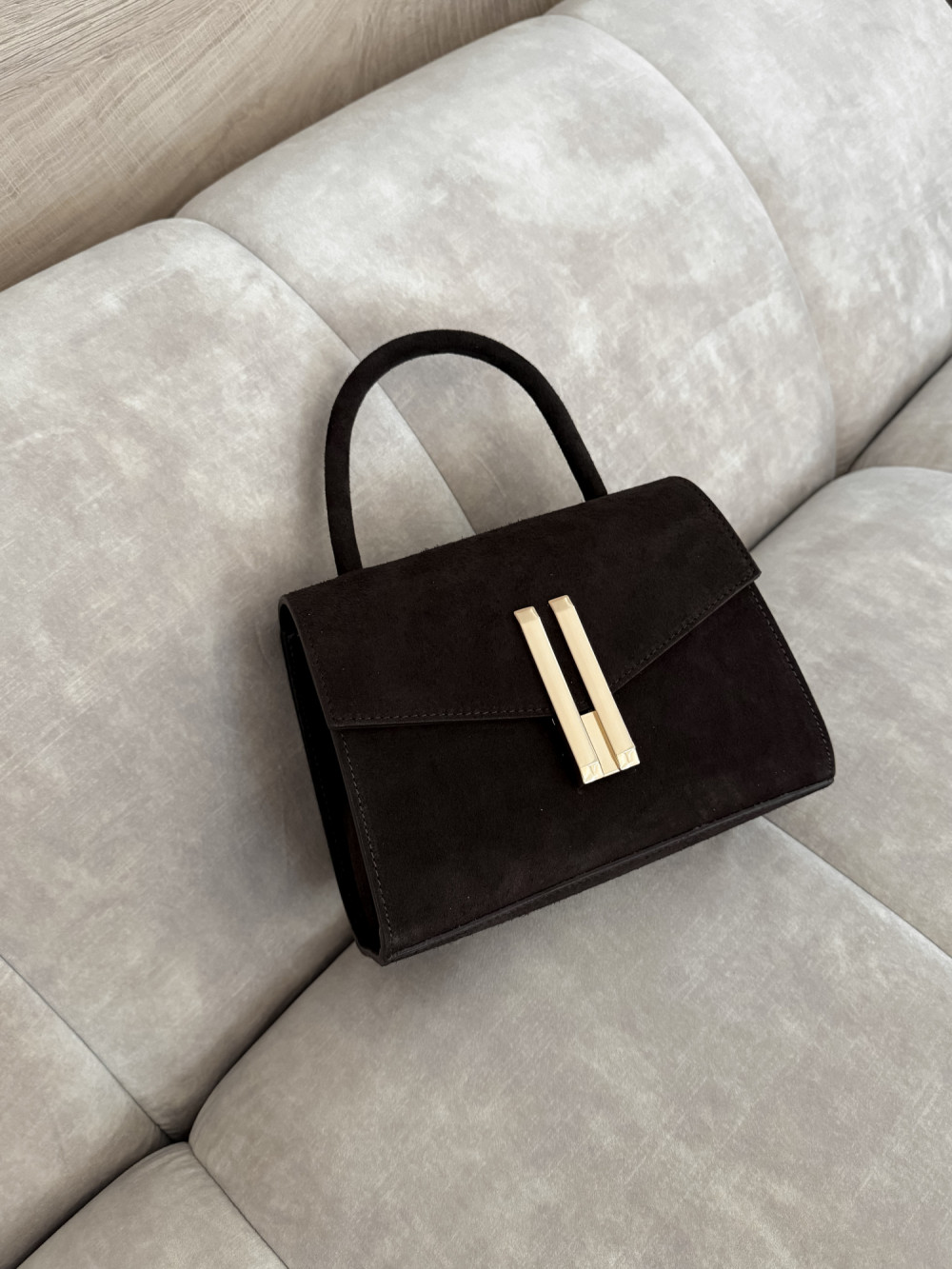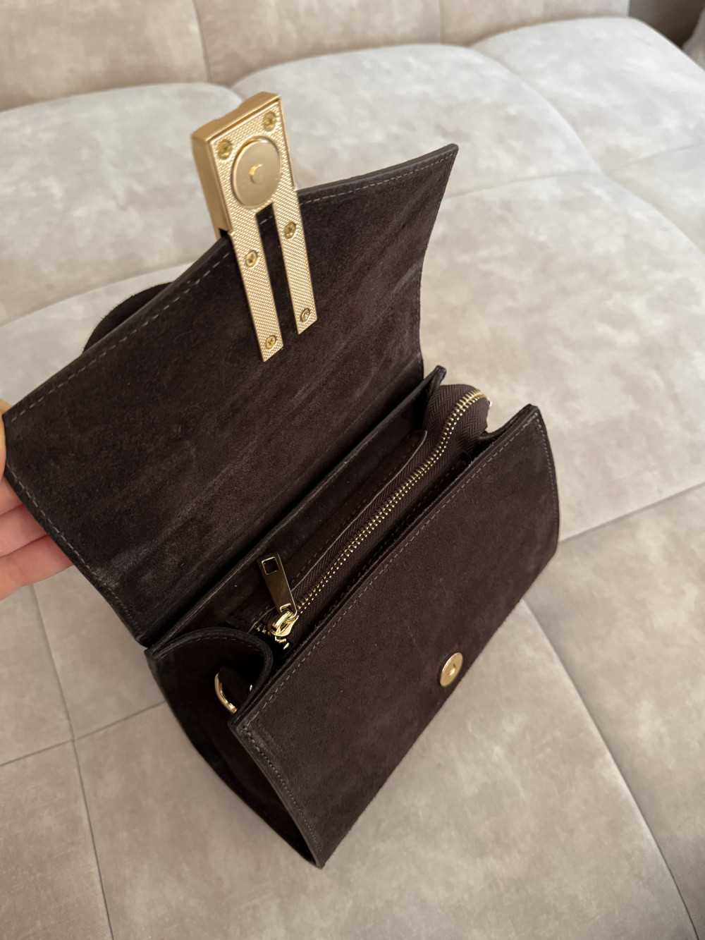 Torebka z rączką 100% skóra zamszowa czekolada ELODIE