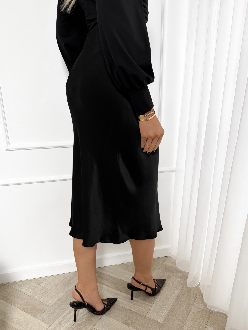 Spódnica z wiskozą satynowa czarna GLOSSY