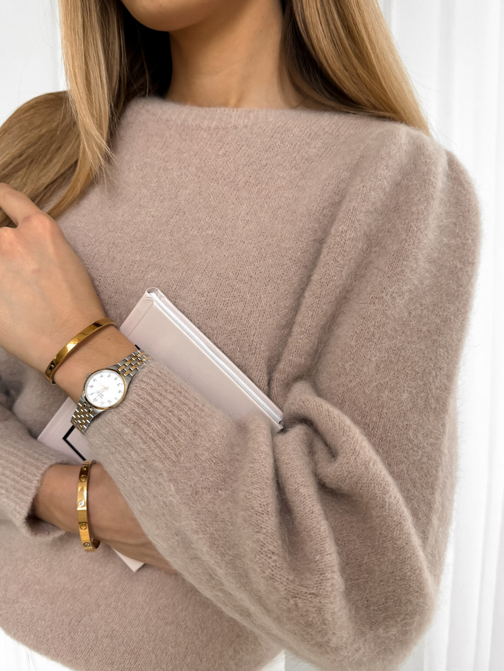 Sweter Maloma w chłodnym odcieniu beżu to elegancka propozycja wykonana z luksusowej mieszanki alpaki i wełny dziewiczej. Zapewnia wyjątkową miękkość, lekkość i doskonałe właściwości termiczne, idealnie sprawdzając się w chłodniejsze dni.