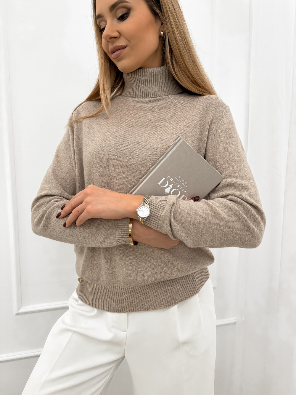 Golf z wełną i kaszmirem beż VEIL