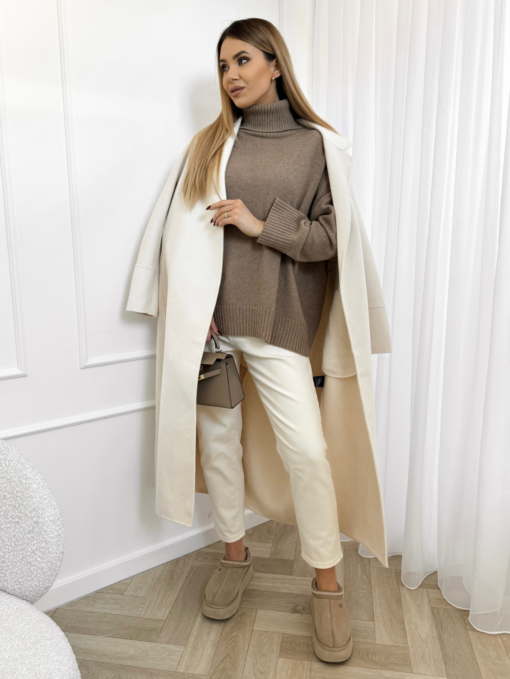 Golf wełniany MOSS w odcieniu fango to doskonały wybór na chłodne dni. Wykonany z wysokiej jakości wełny, oferuje wyjątkowe ciepło oraz komfort noszenia. Jego minimalistyczny design oraz elegancki krój sprawiają, że świetnie komponuje się w różnych stylizacjach, zarówno casualowych, jak i bardziej formalnych. Odcień fango to stonowany, neutralny kolor, który łatwo zestawisz z innymi elementami garderoby, dodając każdemu outfitowi subtelnej elegancji. Golf MOSS to must-have w każdej szafie, łączący funkcjonalność z modowym wyrazem.