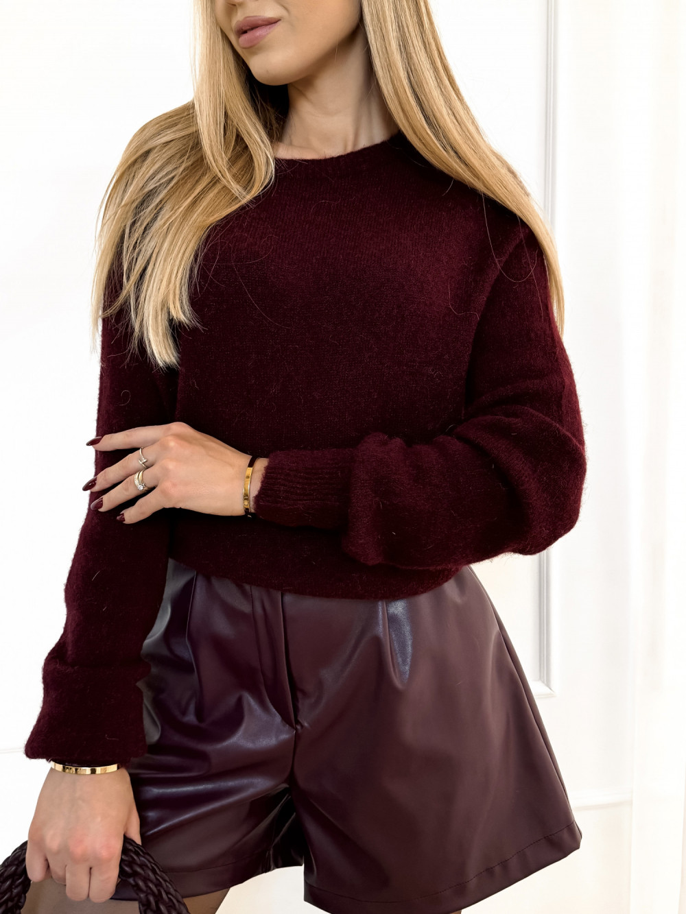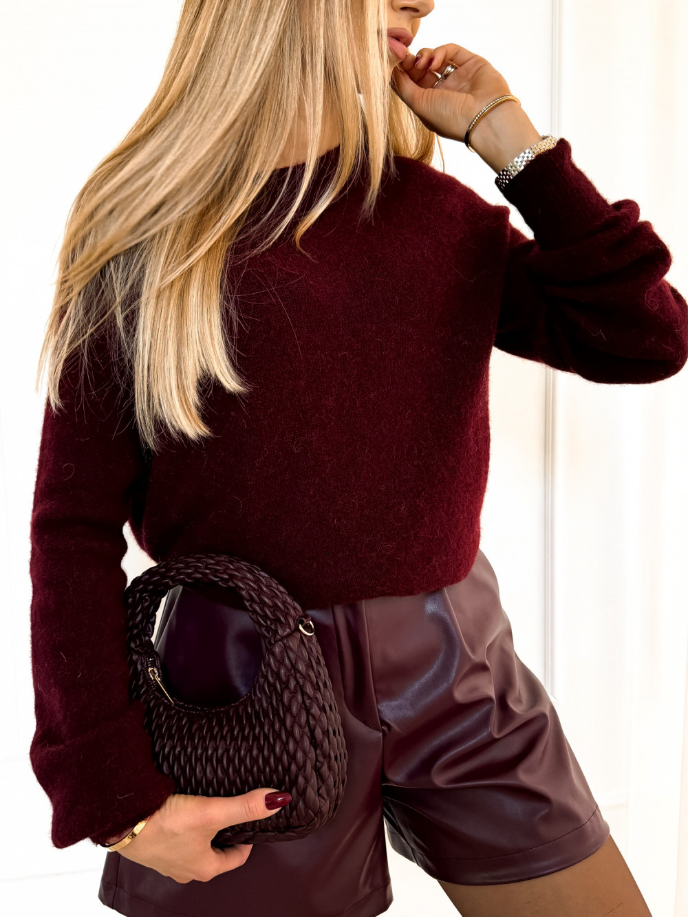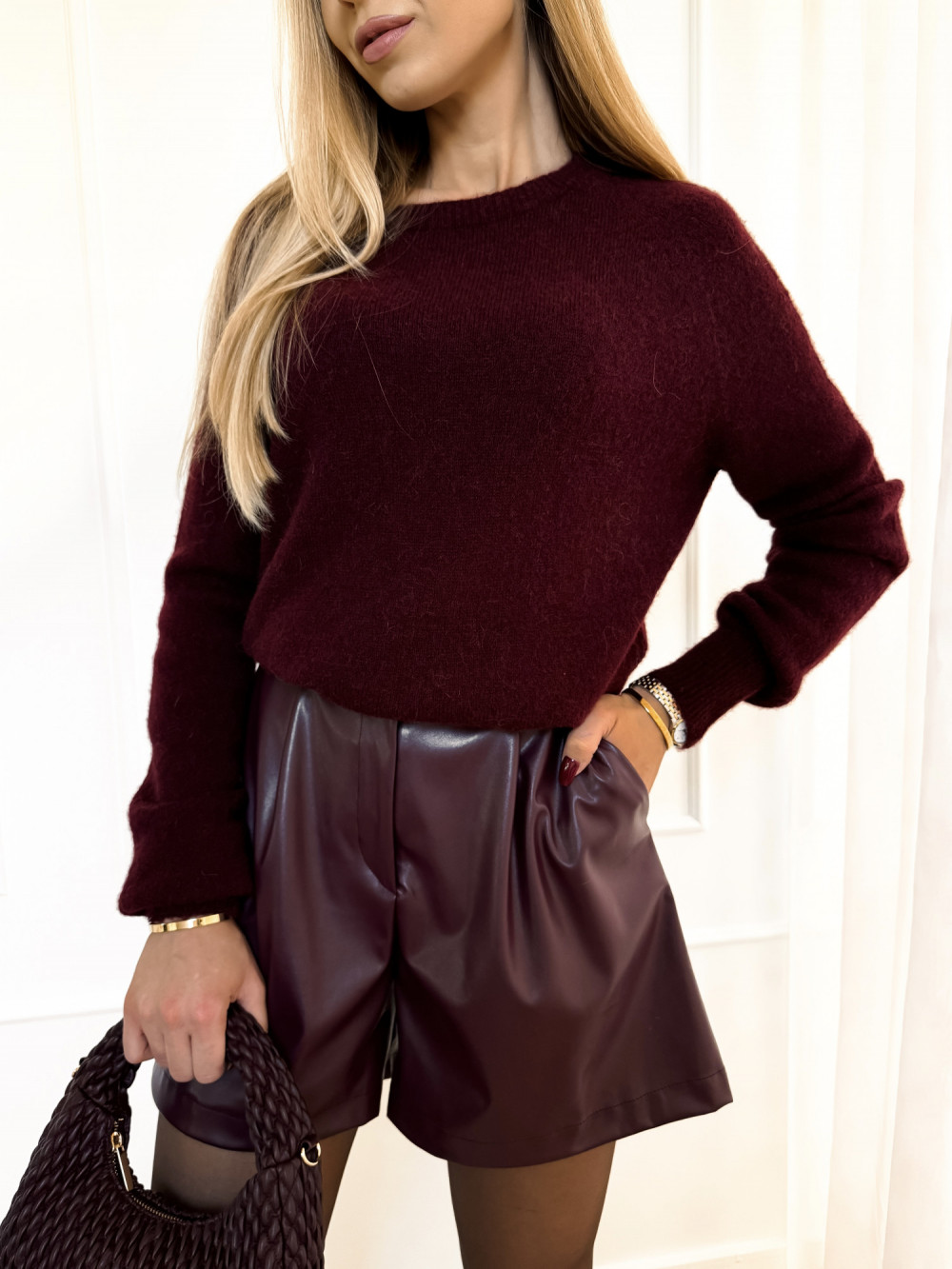 Głęboki bordowy odcień nadaje mu wyrazistego charakteru, co czyni go doskonałym akcentem w każdej stylizacji. Świetnie komponuje się z jeansami, tworząc casualowy look, a także z eleganckimi spodniami lub spódnicą, co sprawia, że nadaje się na różne okazje.