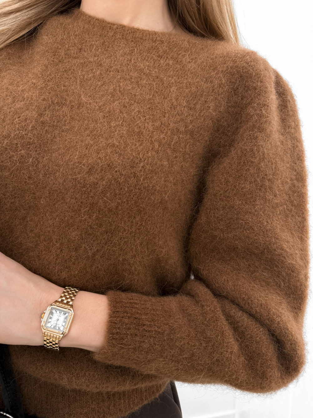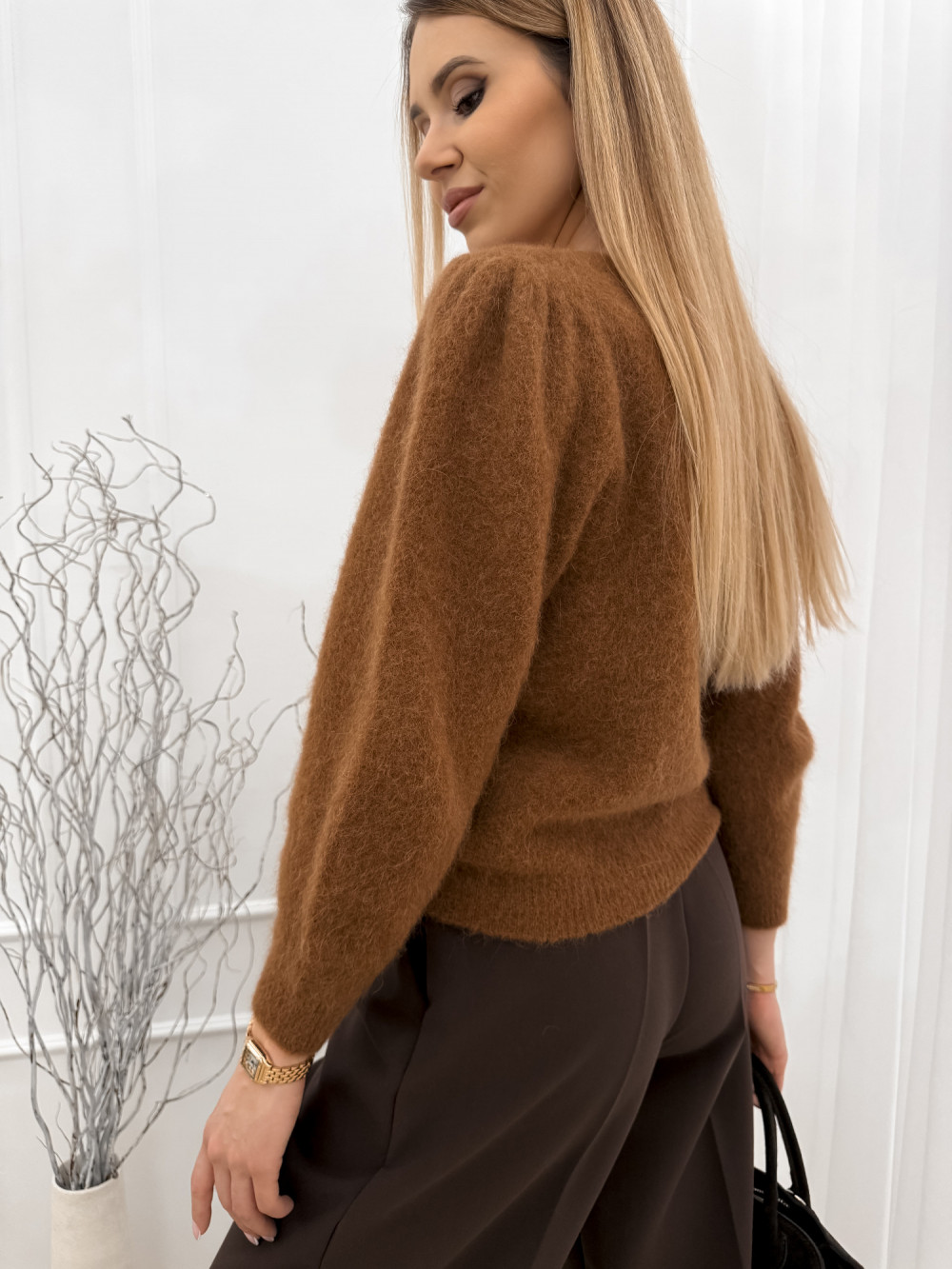 Sweter z alpaki i wełny dziewiczej z marszczeniem na ramionach camel MALOMA