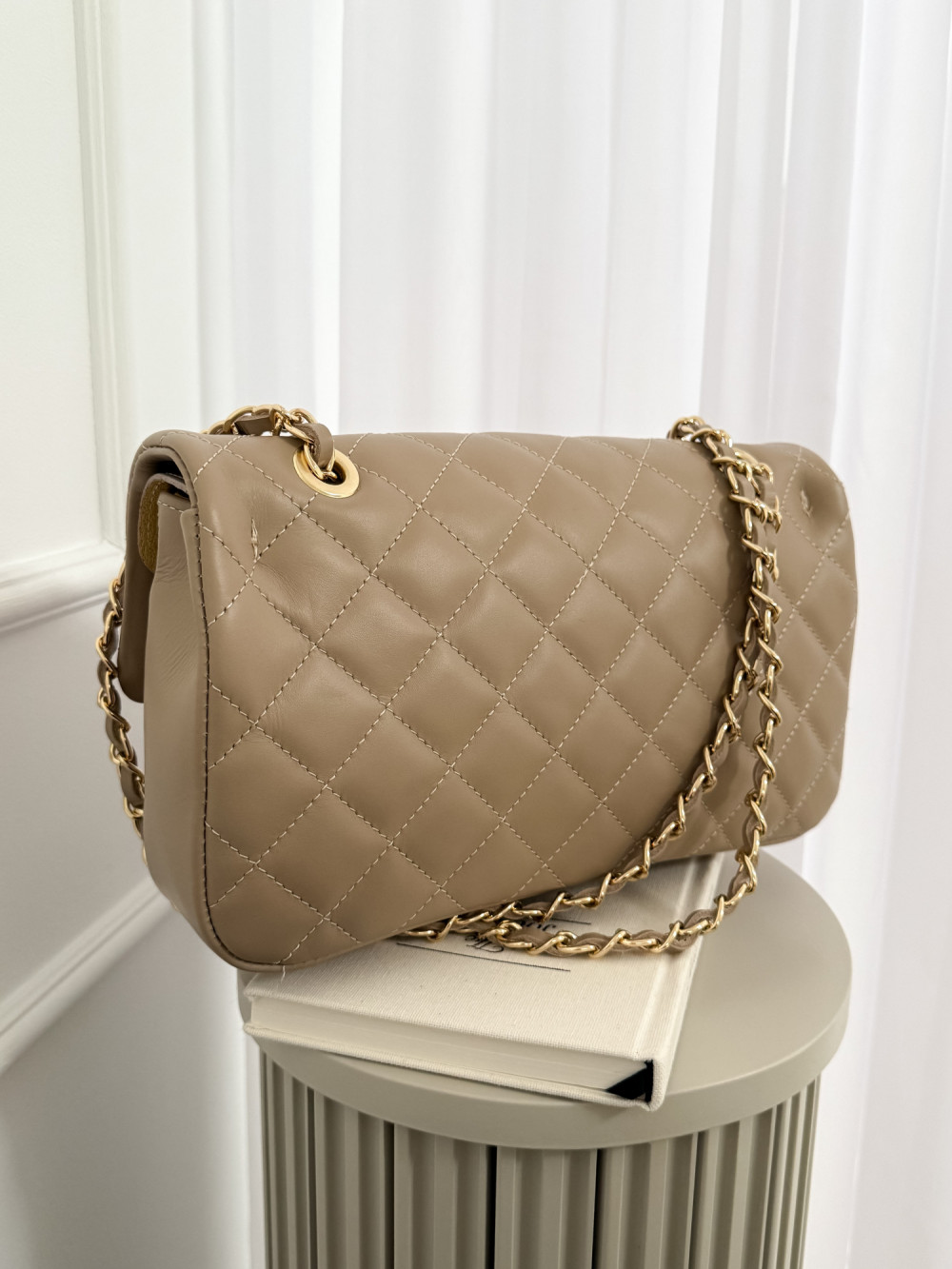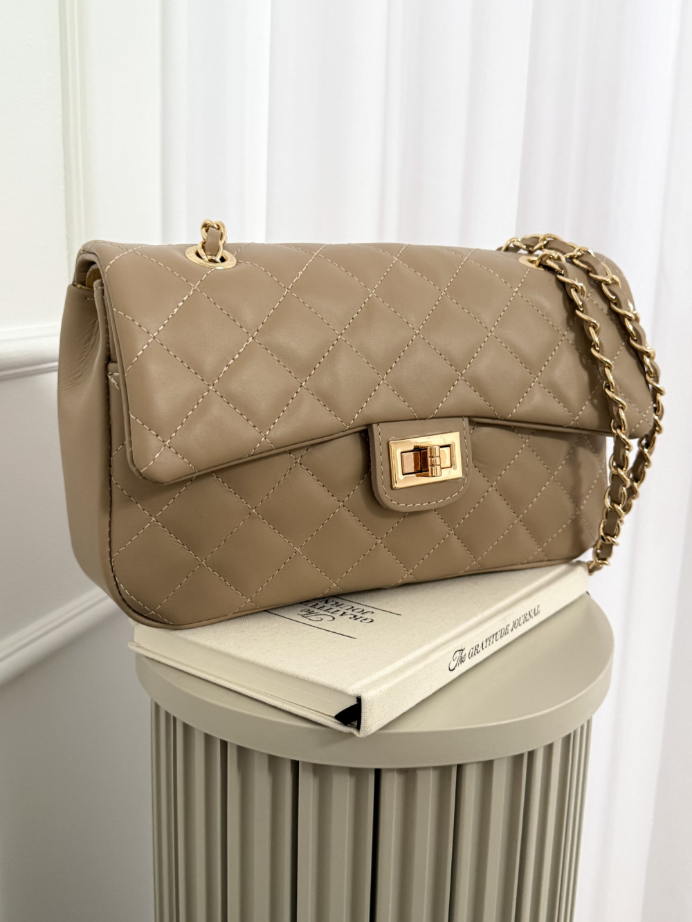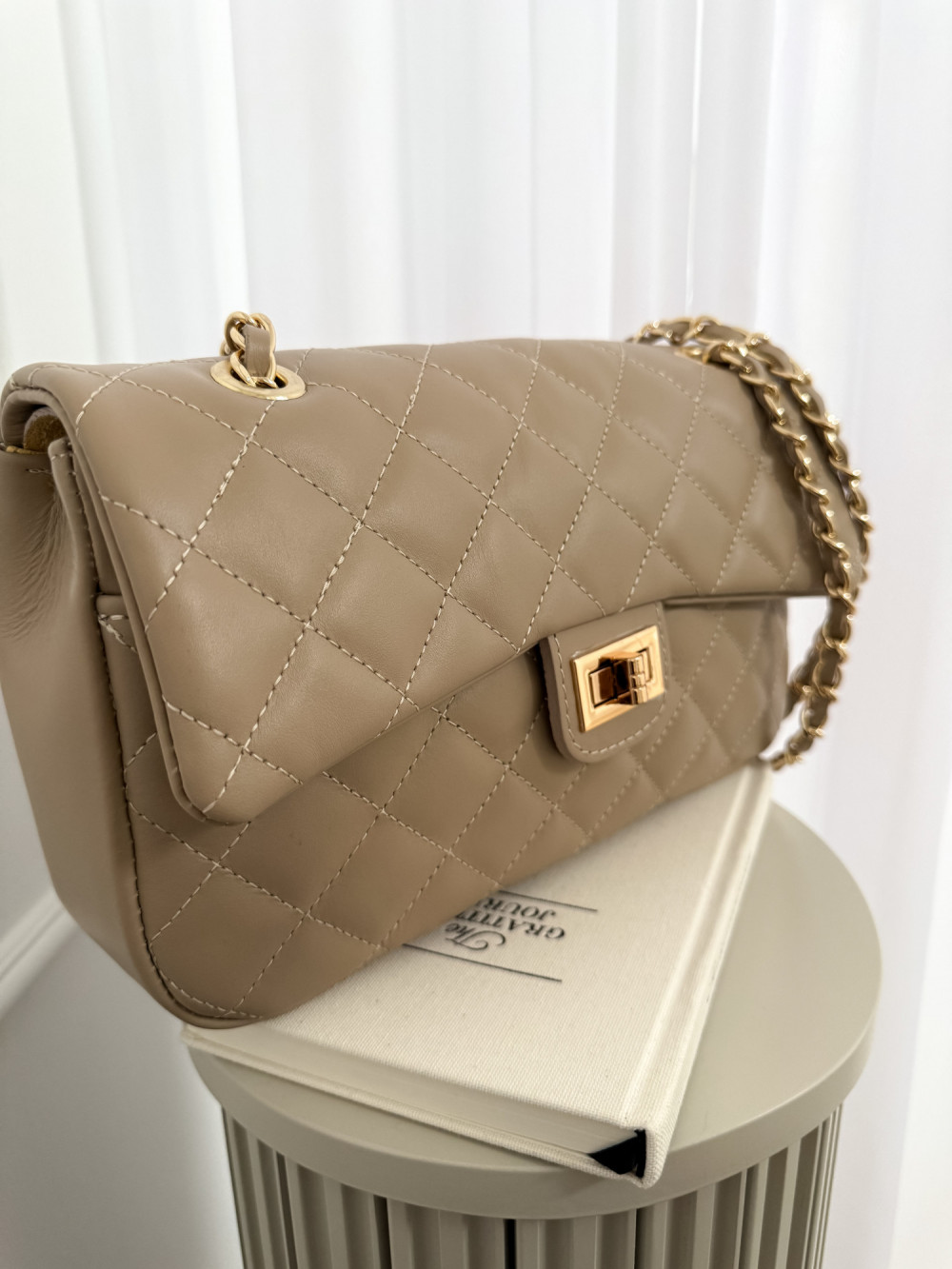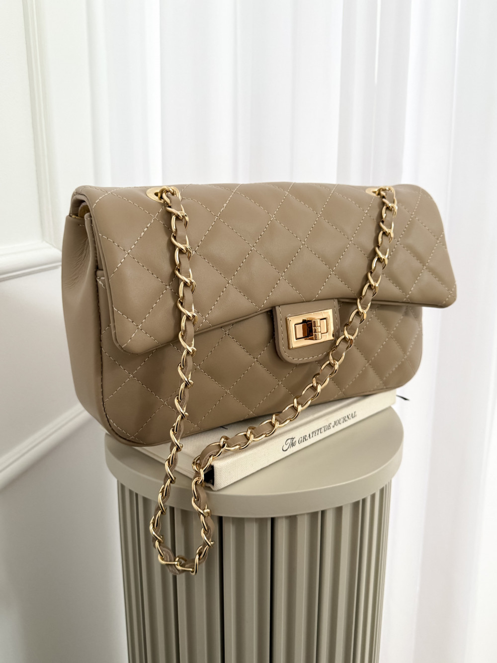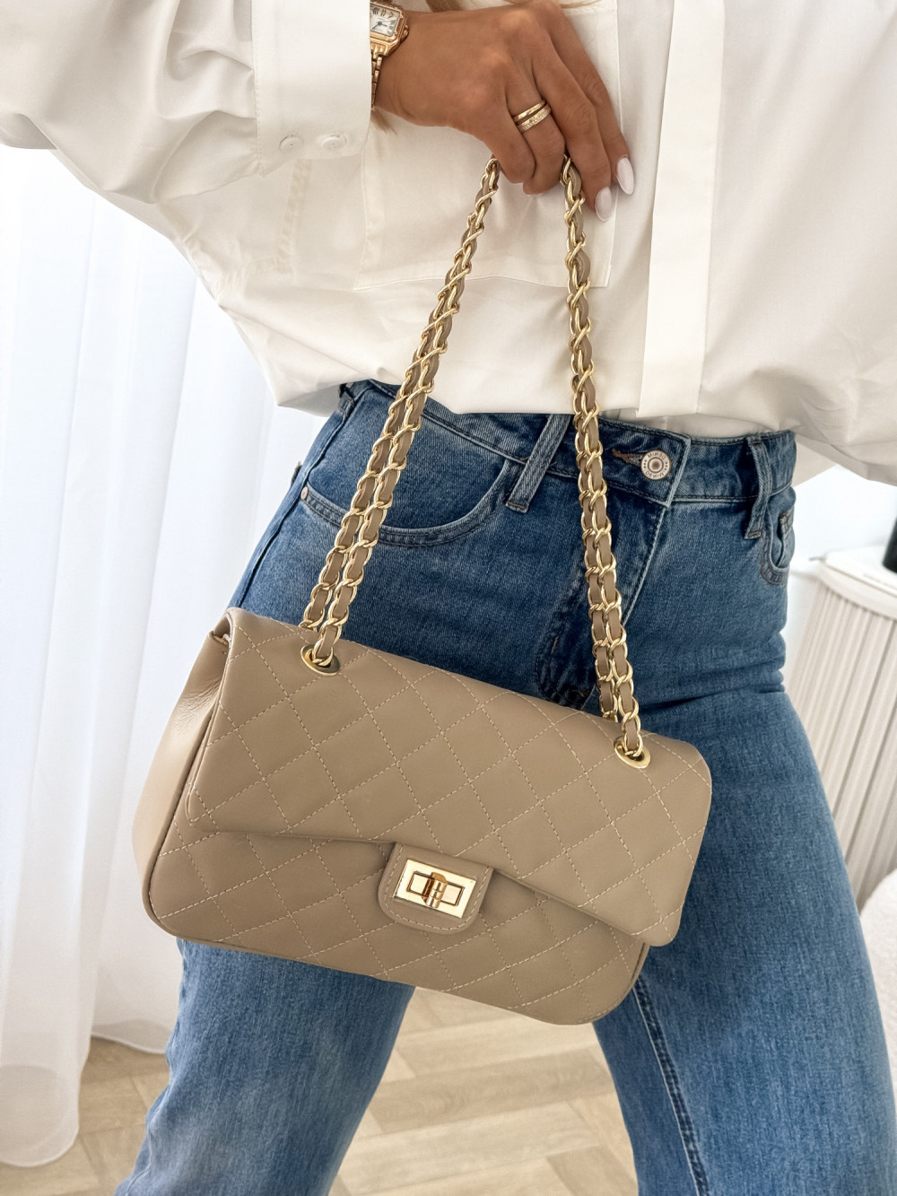 Elegancja, która nie zna kompromisów – torebka VANITY to kwintesencja klasyki w nowoczesnym wydaniu. Wykonana z najwyższej jakości skóry naturalnej, zachwyca subtelnym odcieniem beżu, który doskonale komponuje się z każdą stylizacją. Pikowany wzór dodaje jej wyjątkowego charakteru, a precyzyjne wykończenie świadczy o dbałości o każdy detal.