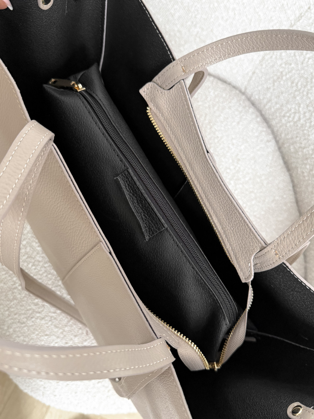SOLENE MAXI w chłodnym beżu to wybór dla kobiet, które szukają pojemnej, ale stylowej torebki – idealna do pracy, na zakupy czy spotkania biznesowe, a także na wieczorne wyjścia.