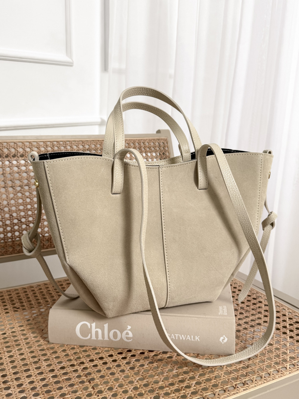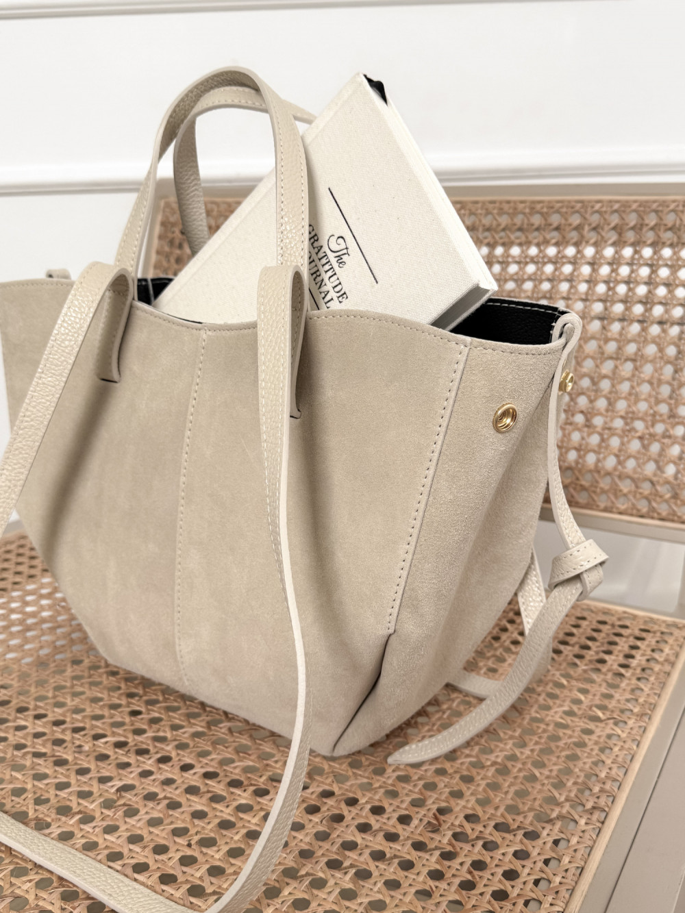 Torebka 100% skóra naturalna zamsz jasny beż SOLENE