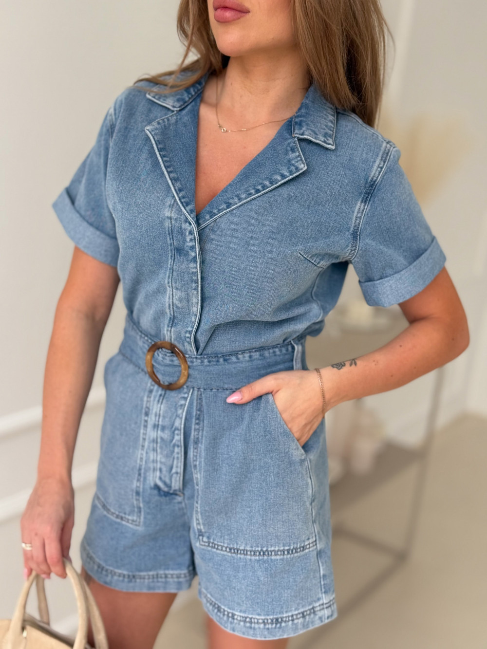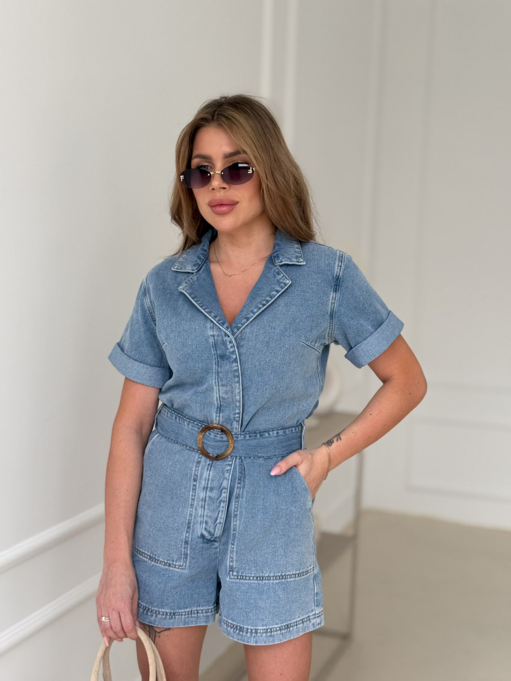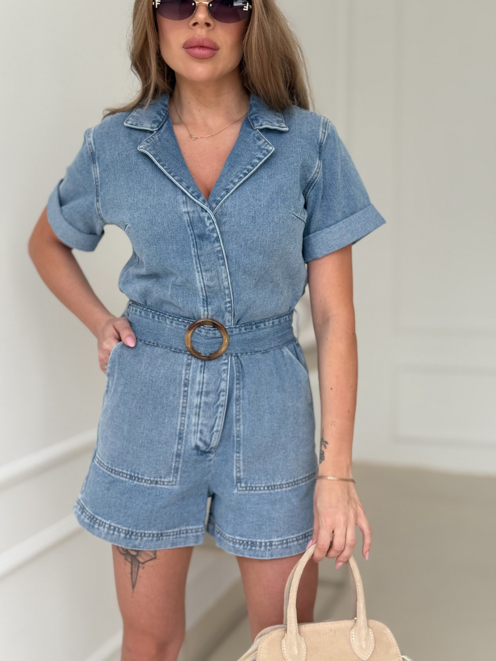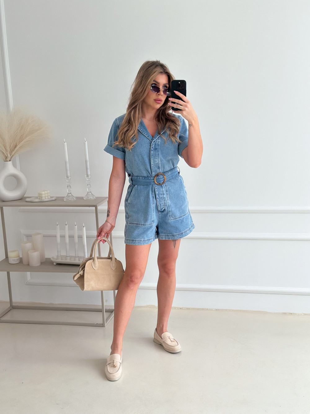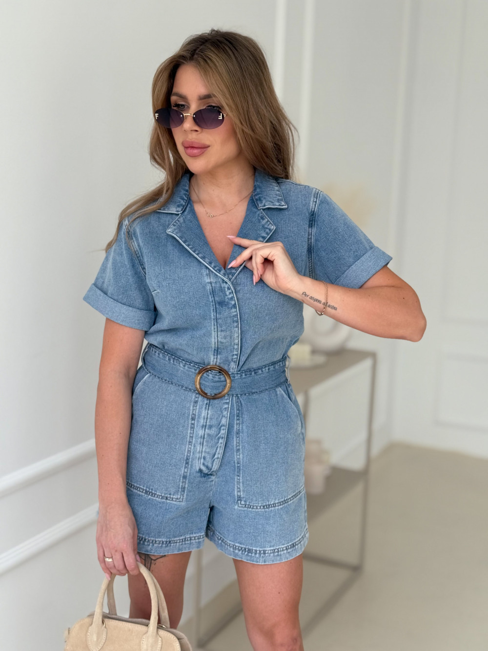 Kombinezon jeansowy z paskiem niebieski VESPER