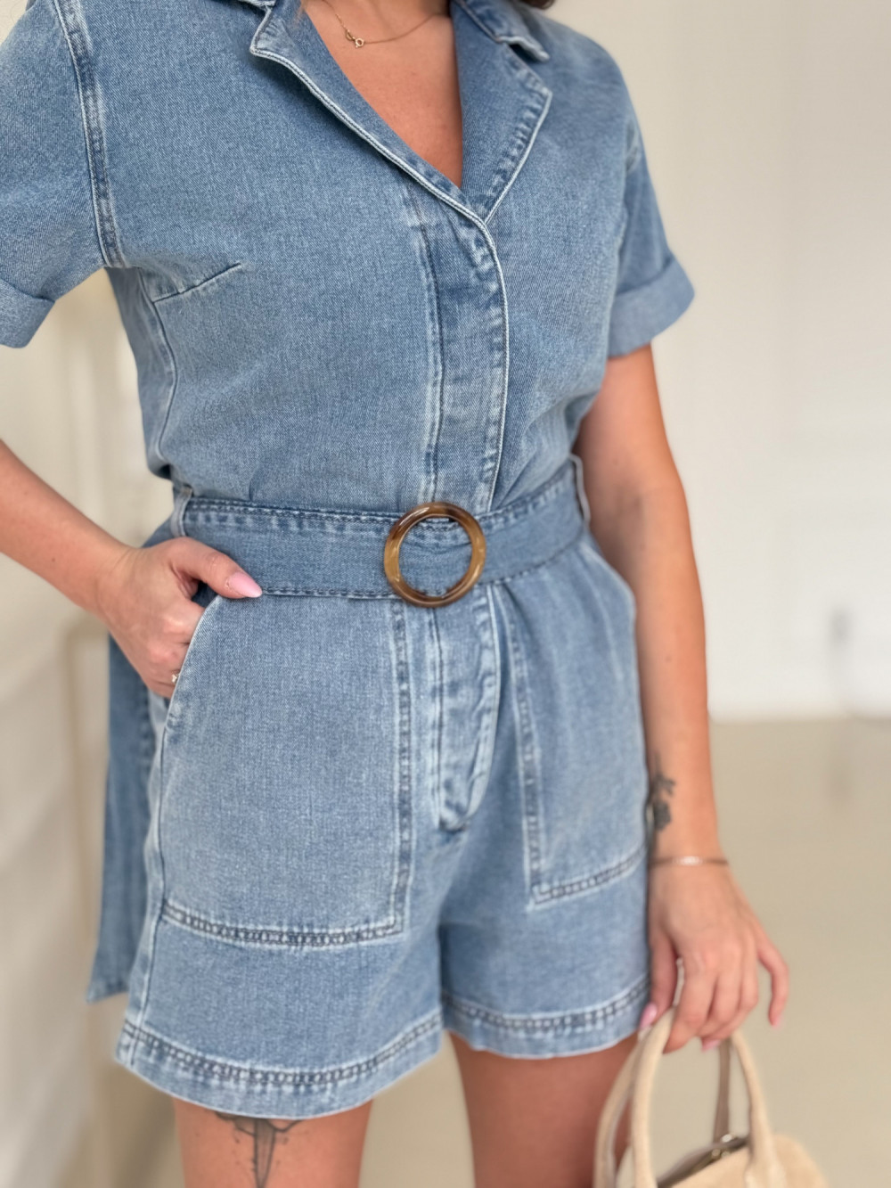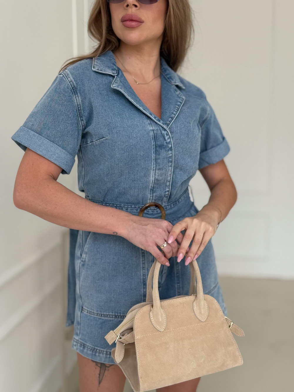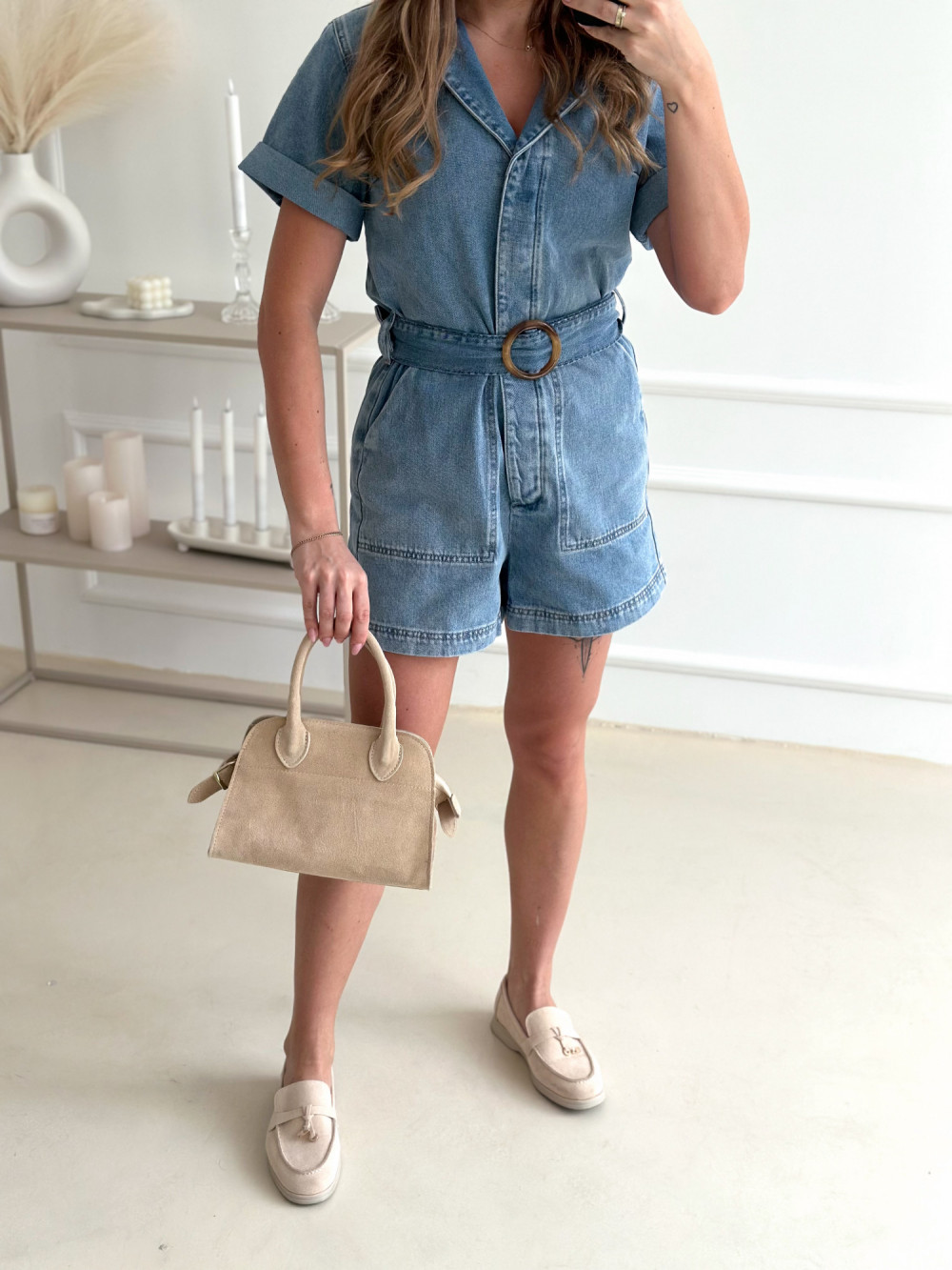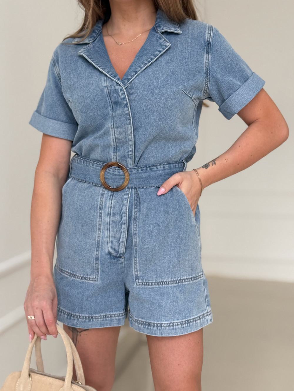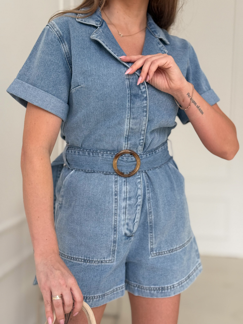 Kombinezon jeansowy z paskiem niebieski VESPER