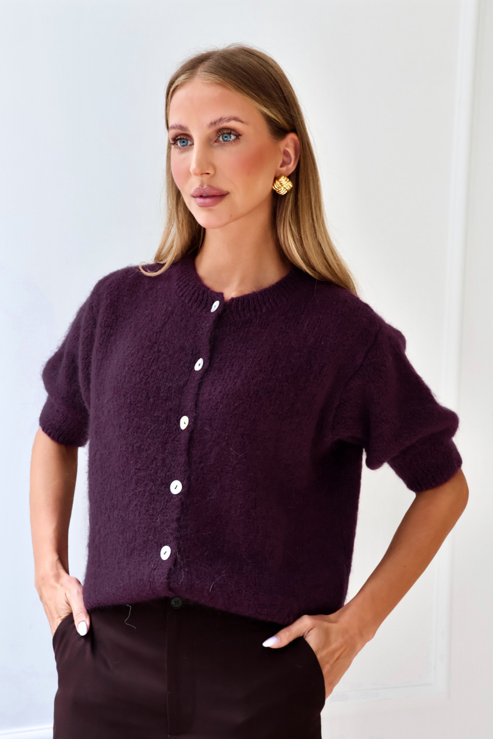 Kardigan z krótkim rękawem z moherem i wełną śliwka CHESTER