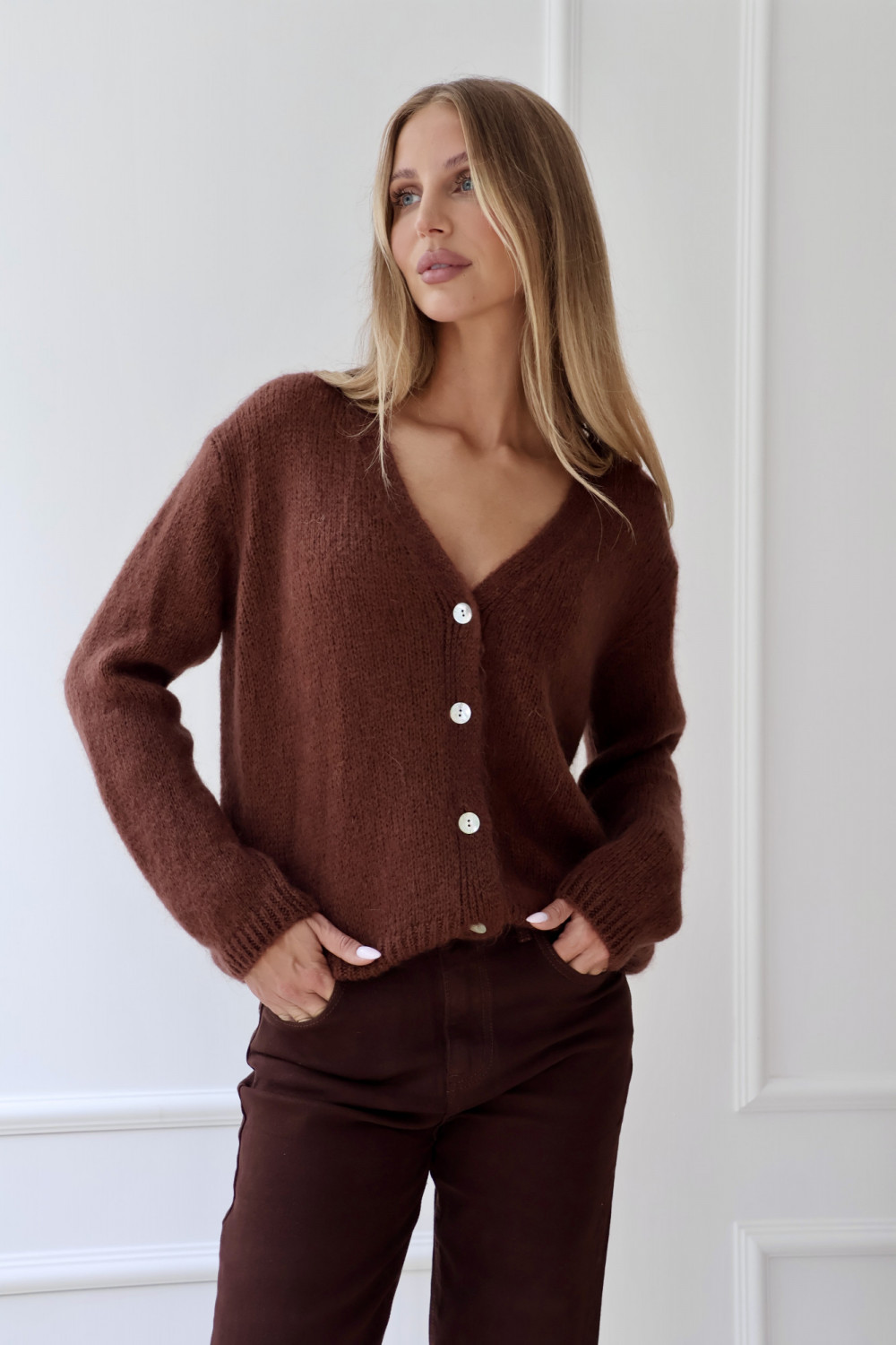 Szal z kaszmirem i wełną z frędzlami toffi SNOW